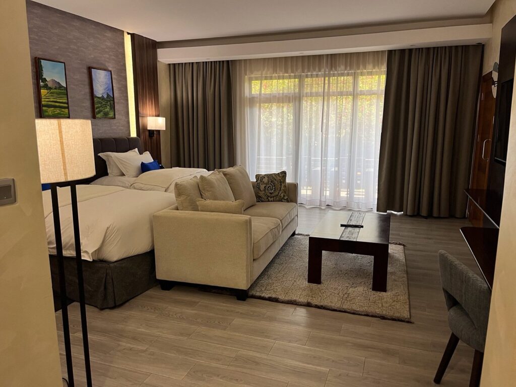 Virunga Inn Resort and Spa offers stylish accommodations with beautiful views of the mountains. The property features beautifully appointed rooms equipped with comfortable bedding, a private bathroom, a flat-screen TV, a safety deposit box, and a seating area. The property also features a 24-hour front desk, free Wi-Fi throughout, room service, and a restaurant serving a tasty breakfast each morning.